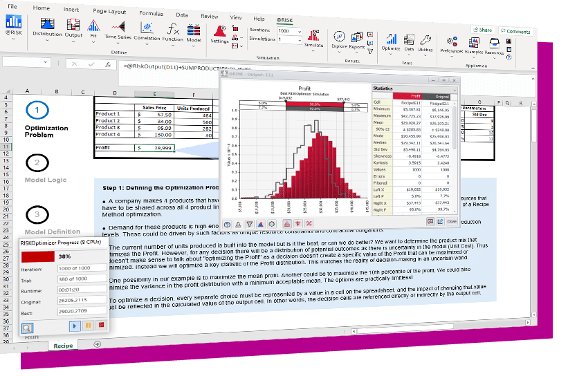 The complete risk and decision analysis toolkit, including @RISK, PrecisionTree, NeuralTools, StatTools, Evolver, RISKOptimizer, and ScheduleRiskAnalysis.