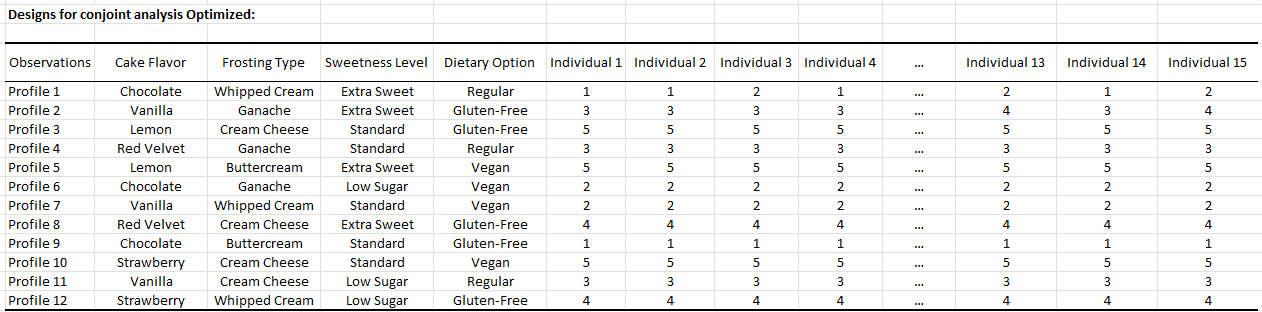 For example, just five attributes with three levels each results in 243 possible cupcake profiles—far more than anyone can reasonably taste (or rank!) in one sitting.