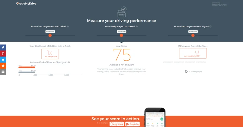 More specifically to TrueMotion, who deal with the hazards of dangerous driving, was the difficulty in dealing with people ‘availability heuristic’, the idea that people, in a driving context, believe they will never crash because they haven’t already. They aimed to counteract this, and highlight relative risk, in their interactive visualization platform, GradeMyDrive.