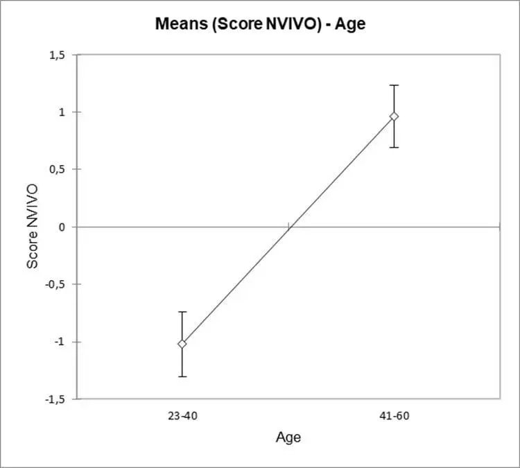 The average of the results of the sentiment analysis was equal to 0.10 which means that people are neither happy nor unhappy. Previously, Emily only looked at the average sentiment. The insights in NVivo revealed a striking difference between the older and younger employees.