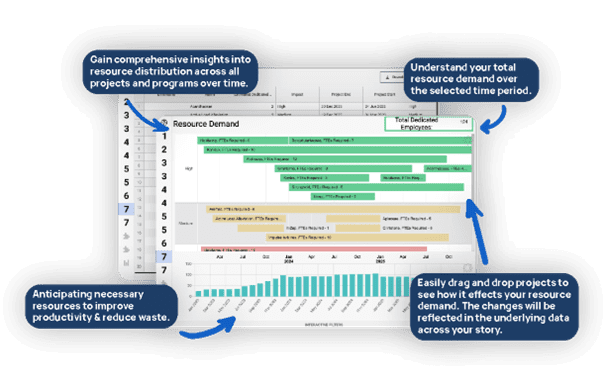 SharpCloud equips you with comprehensive insight into resource distribution across all projects and programs. Make informed decisions about resource allocation to improve productivity, reduce waste, and optimize value delivery.