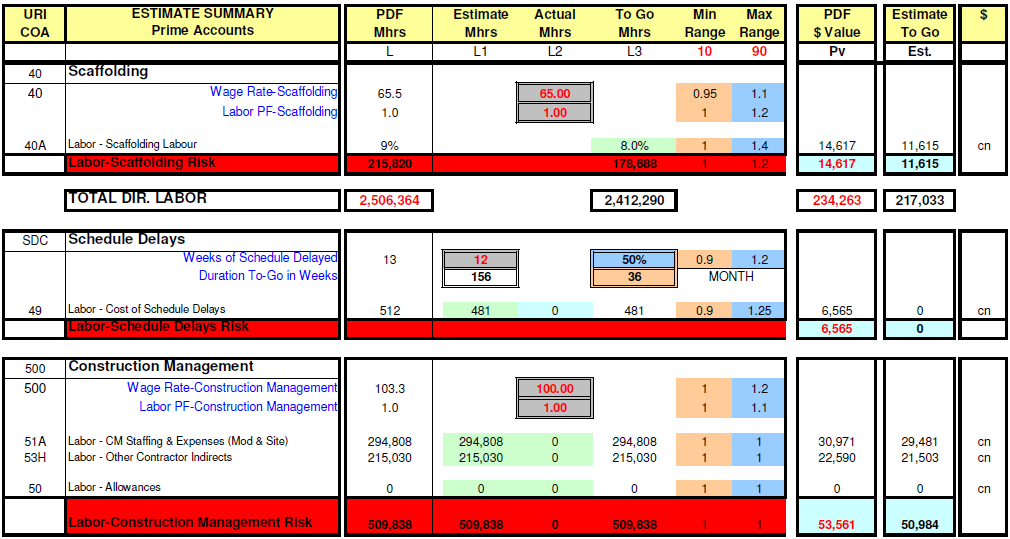 To produce a convincing and auditable analysis, Zhao had to take a myriad of factors into consideration. To determine the contingency amount, an addition to the base estimate to manage and respond to rising risks, Zhao had to risk profile each individual project element and its scope, while also taking the holistic nature of the project as a whole into consideration to include key cost estimate variables and the systemic risk impacts to project objectives. The escalation amount, driven by both Consumer Price Index-based inflation and market trends, had to be properly captured over the course of project execution. Delays likely to push back the project’s completion also had to be factored in.