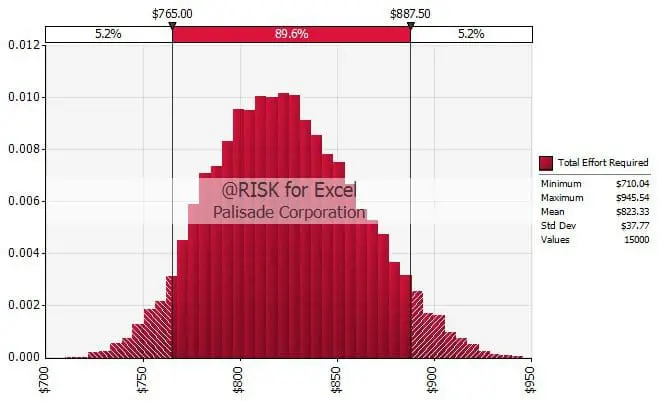 The experiment also found that for a mature outsourcing team, this distribution could be narrow and the deviation between 795 hours (the sum of the most likely times of all the activities) and 99% confidence level would be marginal, translating into approximately less than 2% in cost terms.