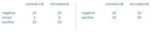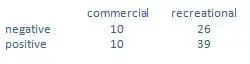 People in commercial fishing are divided on the issue; we will not test the left-hand figures, as this is clearly 50-50.  However, recreational fisher folk seem very positive. However, can we say that there is a significant difference? That as a sample of the recreational fishing population, they represent their population in being clearly positive?