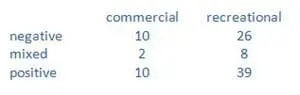 Having jettisoned the ‘Mixed’ results, let us see if there is a significant difference between these two strands of opinion. In other words, is there a significant majority of recreational fisher folk who are positive about the water quality?