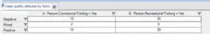 Let us subject the numbers on the left to a test, the Chi Square test of association. The test tells you whether or not there is likely to be a relationship between the two factors, fishing demographic and attitude to water quality.