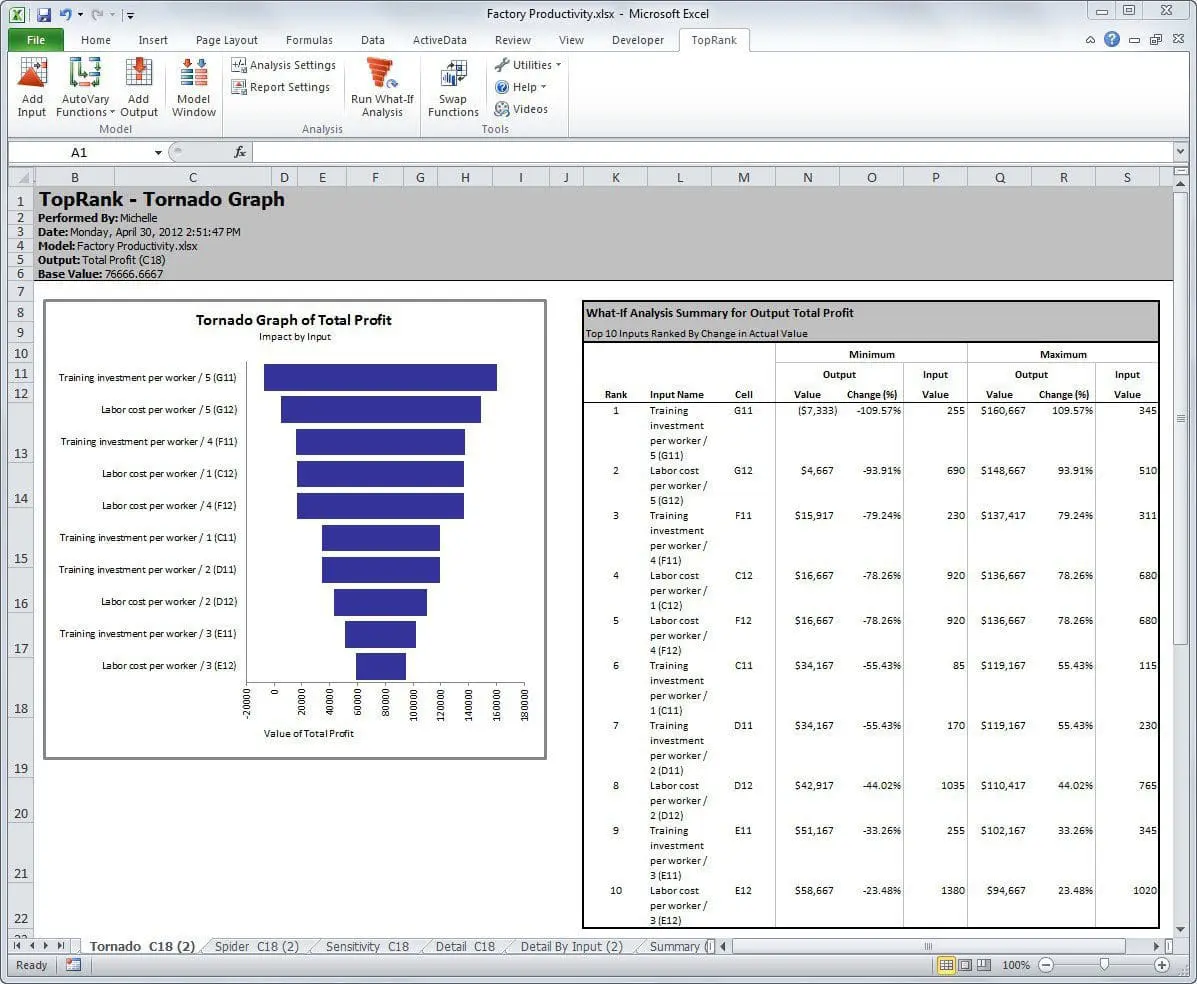 This method is appropriate for simple models and involves adjusting input variables one at a time across a defined, but generally limited, range. For instance, you might vary all inputs +/- 10%, as noted earlier. As any one given input variable is adjusted, all others are fixed. Local sensitivity analysis is an excellent precursor for further analysis as it saves tremendous time and energy by helping to focus the project.