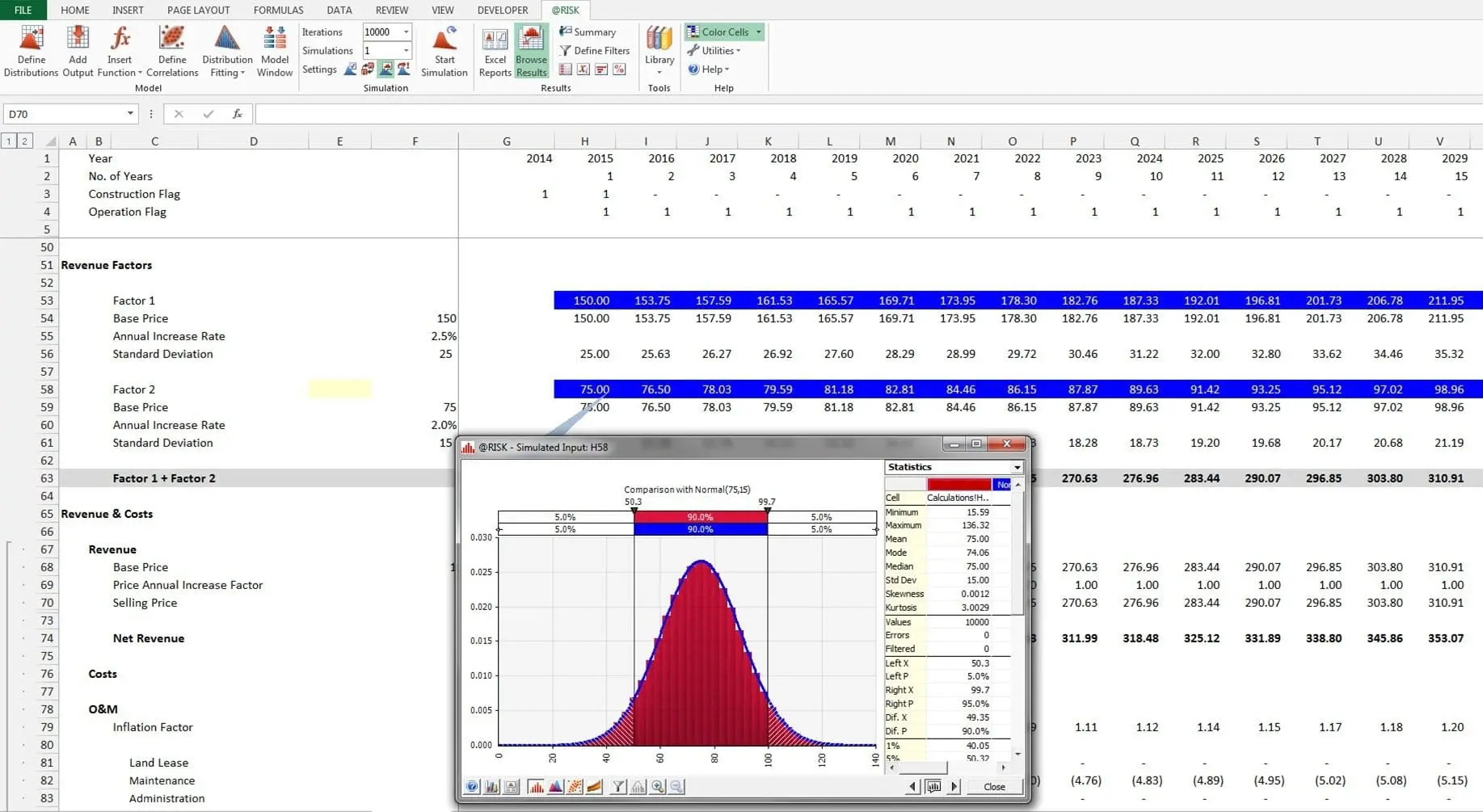 - Define distribution for input variables. The user-friendly nature of the feature allowed researchers to pick and choose the type of distribution for input variables and enter key parameters. 2. Excel Reports: This feature allowed easy and quick access to output results and verification of the iterations carried by the software and sensitivity analysis, which was critical in examining the feasibility of the project. Chawla said that @RISK was “instrumental in helping to analyze the probability of risks and their bearing on project’s IRR.” As a result, WEnergy Global decided to pursue the multimillion dollar project, which will commence in June 2015.